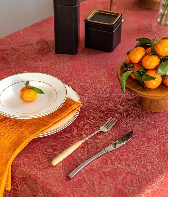 可以为餐桌换上一块喜庆的餐桌布,为椅子换个新椅套,或是添置一些新餐具都不错。
