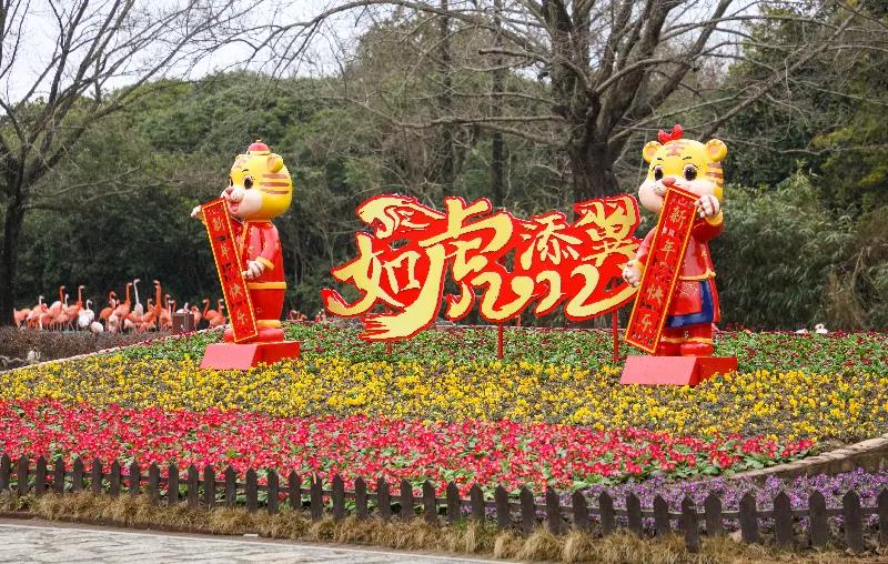 “福虎生威”年宵花展由生肖植物、年宵花卉和节庆花艺三部分组成,以与“虎”相关的特色植物为主元素,辅以蝴蝶兰、彩叶凤梨、三角梅、朱顶红、大花蕙兰、彩色马蹄莲、粉花酸脚杆和黄水仙等各种年宵花卉,通过花艺组景、单体盆栽展示等形式渲染热闹喜庆的春节氛围。