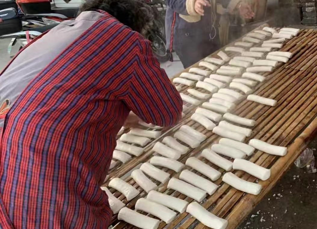 每次打年糕,凌晨3点就得起来准备。手工磨米(粳米和糯米)、柴火蒸粉、搡捣米粉团、切年糕块、晾凉……所有程序亲力亲为,为的只是那份“打”出来的年味。
