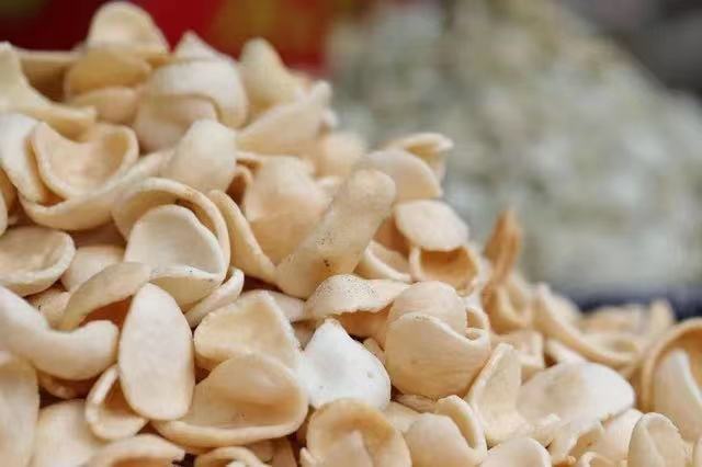 年糕还可以被制成零食,年糕干也是炒出来的,用沙子炒的更香,盐炒的略带咸味,味道更好。和我们平时见到粘软的年糕不同,酥脆的年糕干,松脆化口,米香四溢……