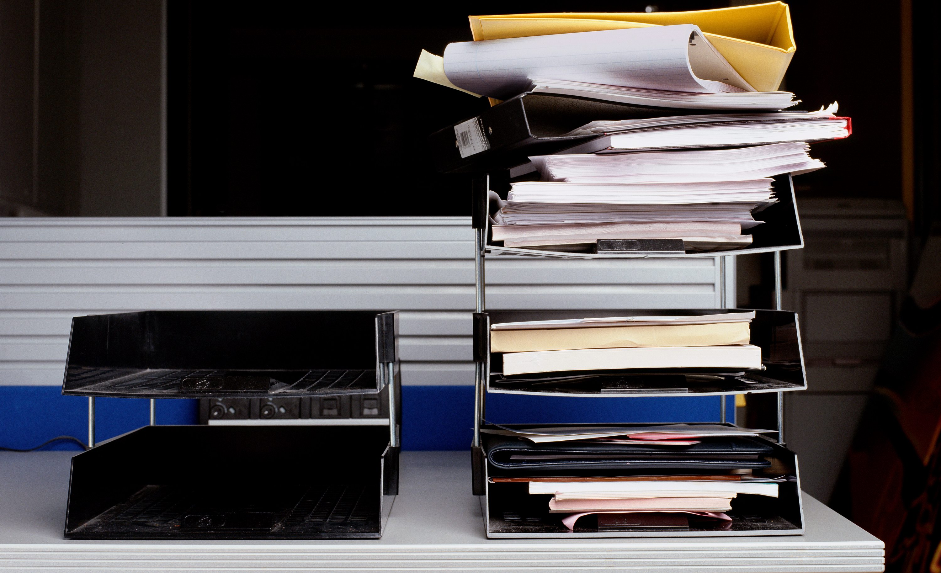 设置一个待办文件筐,只放当天需要处理的文件。同样,建议使用立式文件匣,以便对需要处理的文件数量一目了然。处理完待办文件后,请将不需要保留的文件通通粉碎。