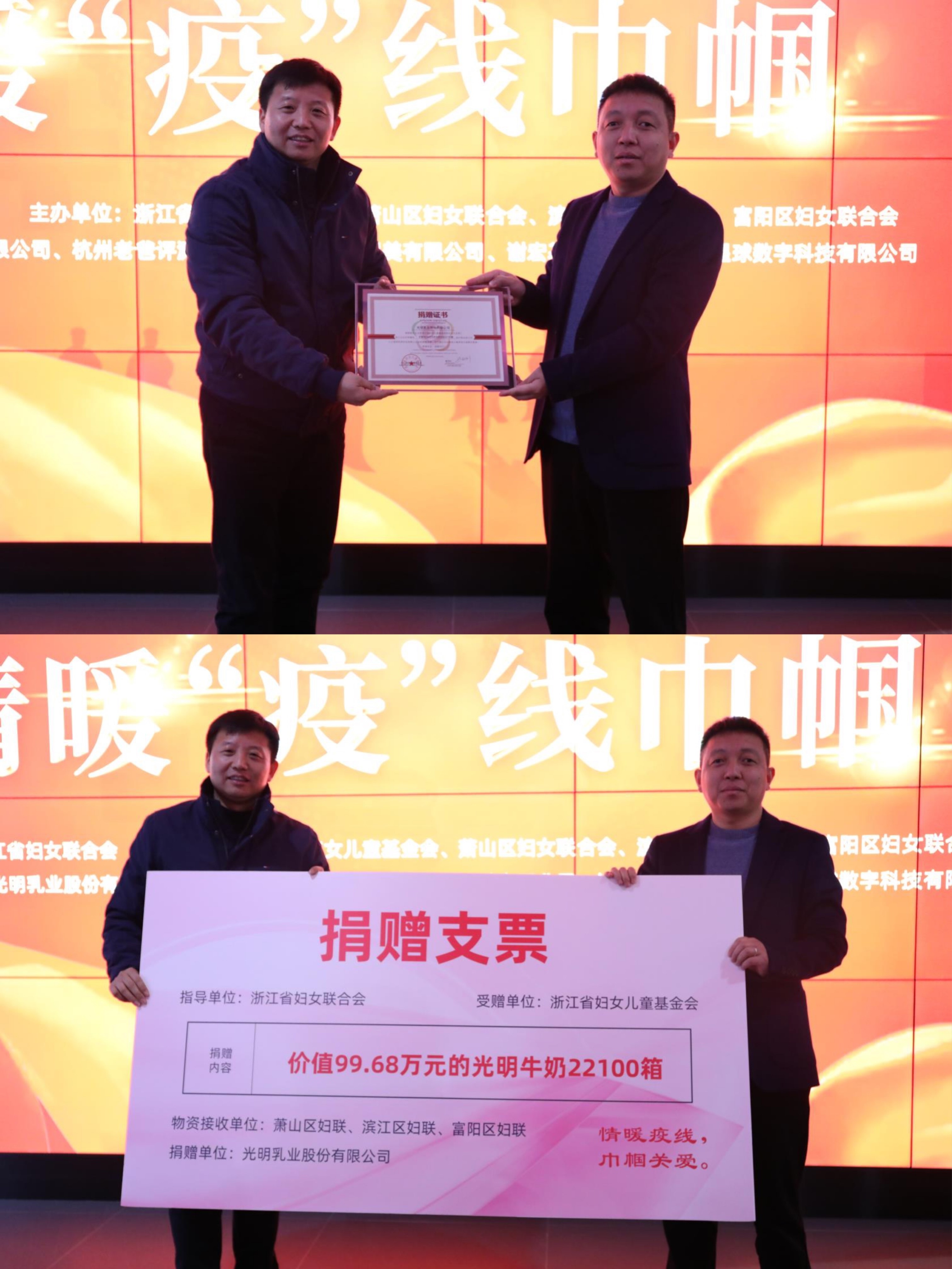 春节前夕,杭州突发疫情打乱了杭州人原本的生活。疫情就是命令,防控就是责任。在全市人民的共同努力下,杭州目前的疫情形势已趋于平缓,无中高风险区域。2月15日,元宵佳节之际,为感谢抗疫一线巾帼工作人员的辛苦坚守和无私奉献,光明乳业倾情参与,助力浙江省妇女儿童基金会开展的“情暖‘疫’线巾帼”关爱慰问活动,为抗疫一线巾帼工作人员送上光明温暖。