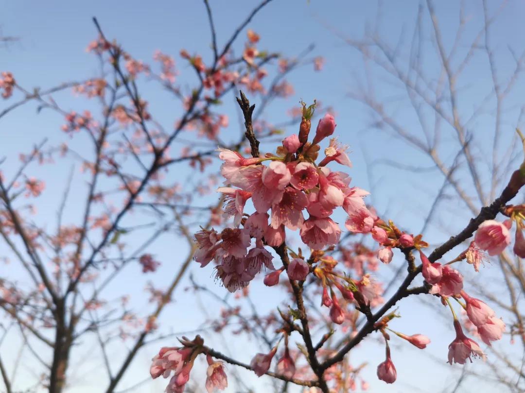 目前,台湾钟花樱也进入始花期,后期初美人樱、大渔樱、大寒樱等早樱花的花芽也陆续进入开放期,预计在2月末和3月初形成一波早樱花的盛花期。