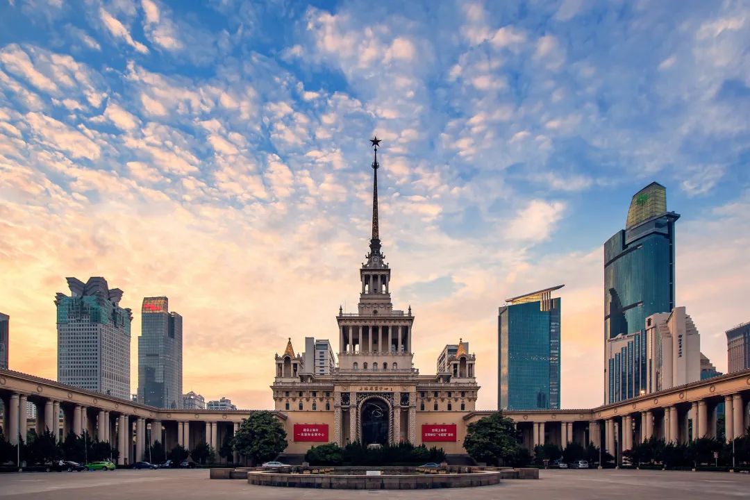 建成于1955年的上海展览中心,原为中苏友好大厦,是上海的地标性建筑之一。主楼连同顶部的五角星共高109米,曾经是上海的制高点。