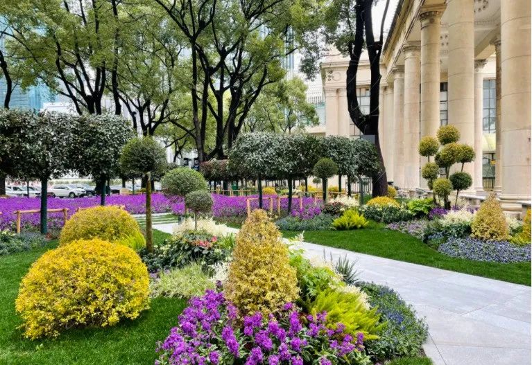 相比从前,这里还多了一些阶梯式水景、草坡花境,让上海展览中心不仅仅是活动举办地,更是家门口的好去处。