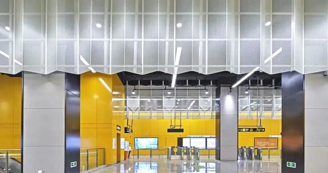 桂林公园走文人画风,墙面折线的设计宛若古典园林中的屏风,一秒带你穿越进悠悠古韵情境。站厅内的柱子横梁运用了中式窗格元素,尽显江南园林意境之美。
