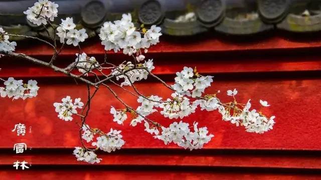 信步走进广富林文化遗址,红墙依旧,百花齐放,迎着春天的阳光初开的樱花,在红墙的映衬下更加娇艳,好像以红纸为底色的工笔花鸟画,恍惚间好像神游唐宋,一日看尽长安花。