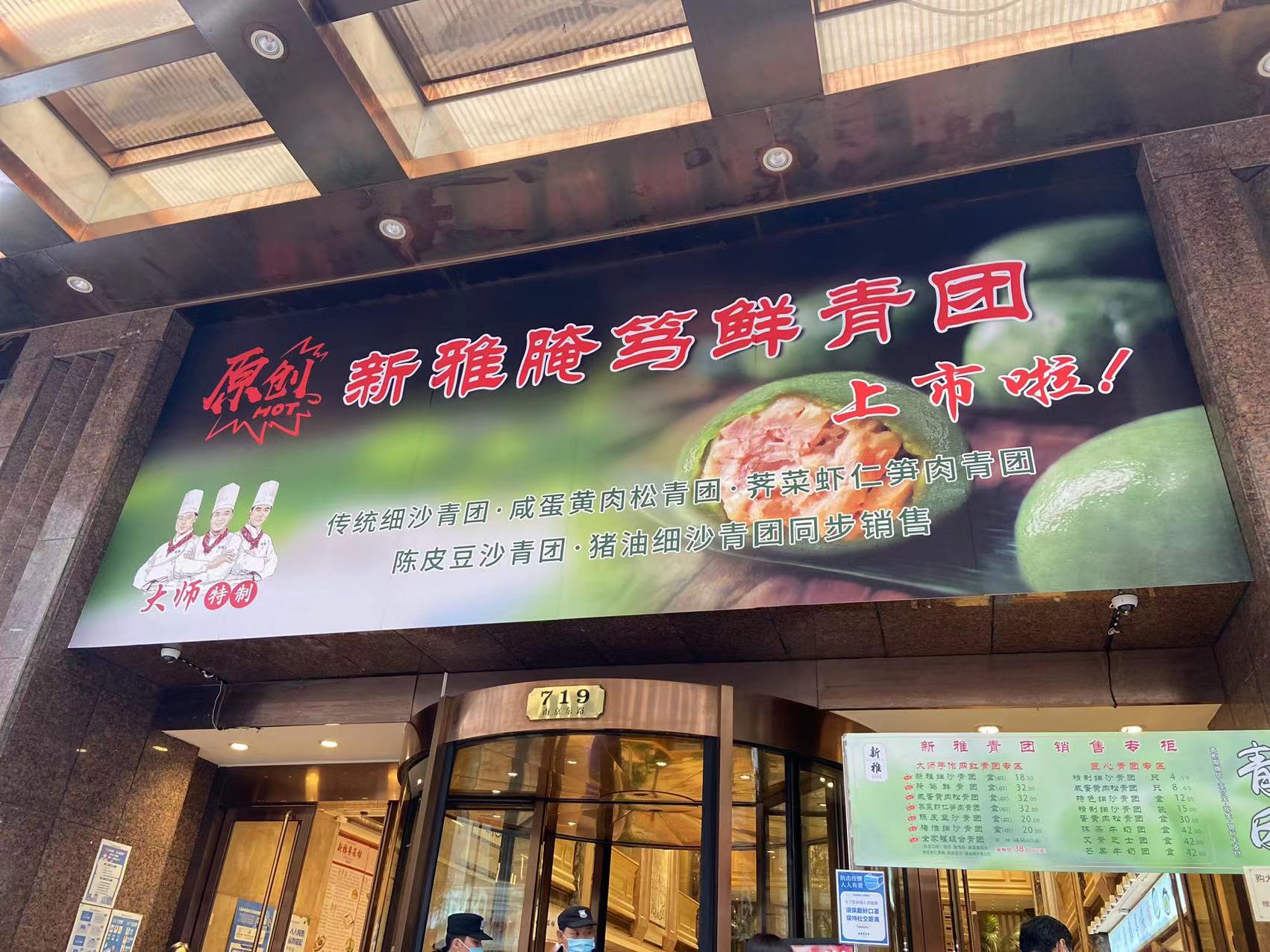 笔者在店门前发现,除了几人询问新品,多数食客则更偏睐细沙口味。新雅相关负责人说:“今年新推出的两款青团,进入市场后接受度和受欢迎度都比较高,但从销量看,还是老款的豆沙、腌笃鲜、咸蛋黄肉松卖得最好。”目前,南京路上新雅门店,平均每天销售青团30000只。