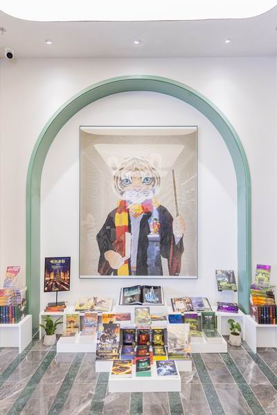 在新店的入口处,有一个“魔法”专区,除了为“哈迷”们打造的《哈利波特》系列图书,还有艺术家呈现的“哈利波特”元素艺术作品。