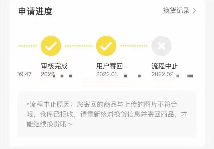 徐女士的换货订单被终止售后服务