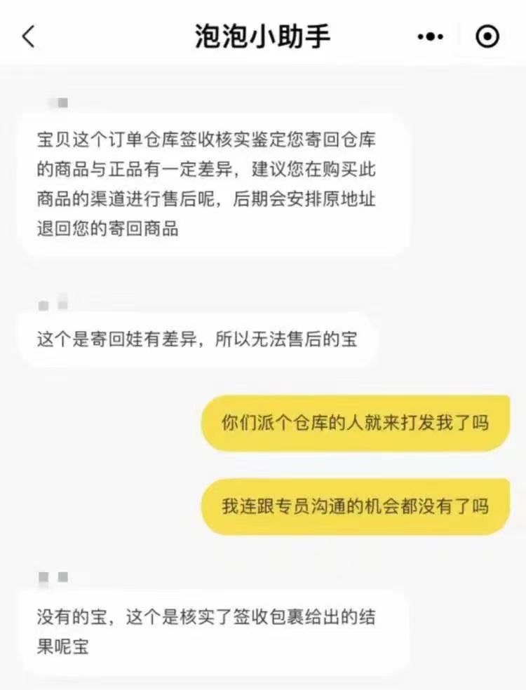 2月18日,泡泡玛特客服通知她的娃娃系“非正品”,并将快递退回。