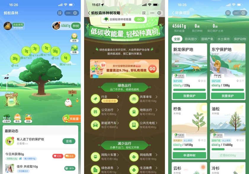 “种树是为了环保,收集能量看似很微弱,但是它会每天提醒着我们要保护环境。出行时,我也会提醒自己和朋友,尽量选择公交或地铁。”笔者身边的一位朋友如是说。