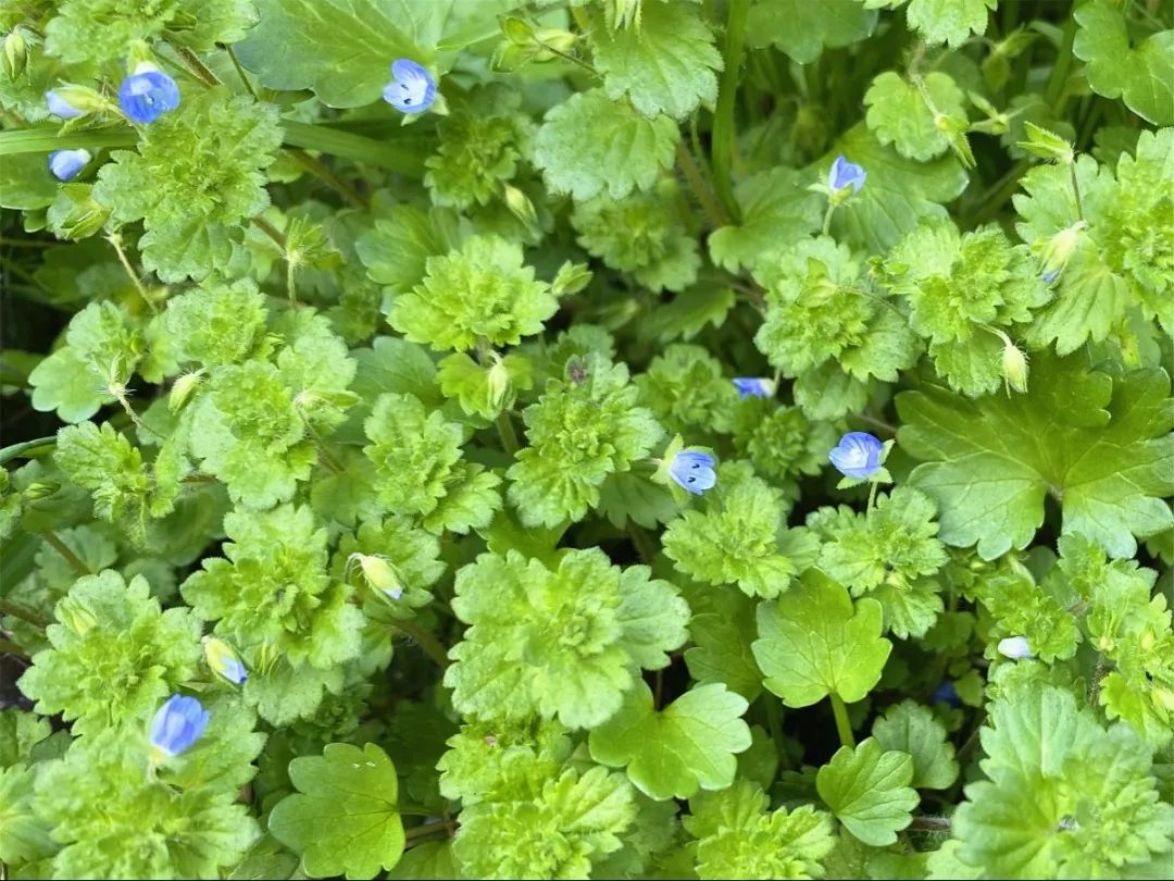 阿拉伯婆婆纳Veronica persica,是春季较为常见的小野花,看名字就知道是一种外来归化植物。蓝色的小花很可爱,但是比较脆弱,一碰就掉了。但盛花时能形成不错的花毯覆盖效果。