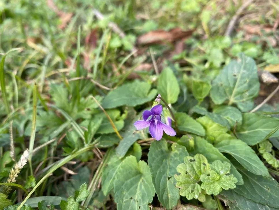 堇菜属植物也是个大属,一年四季都有开放,大部分都是紫色系,花虽小却结构复杂精致,花瓣基部形成向后延伸的距,内有蜜腺,是典型的虫媒花。春季开放的堇菜属植物有不少,例如: