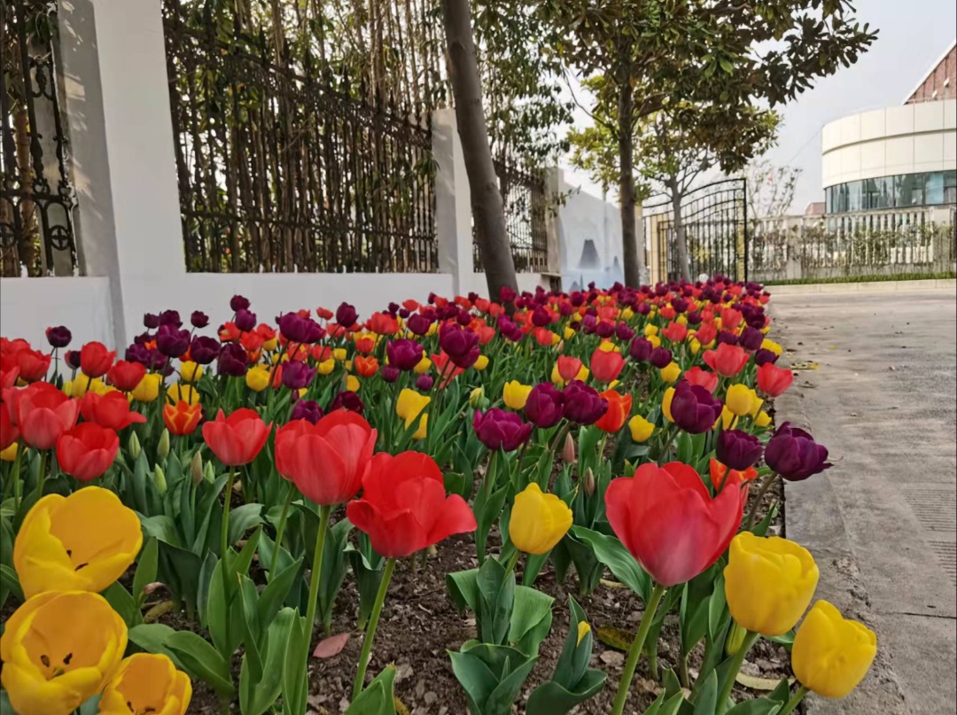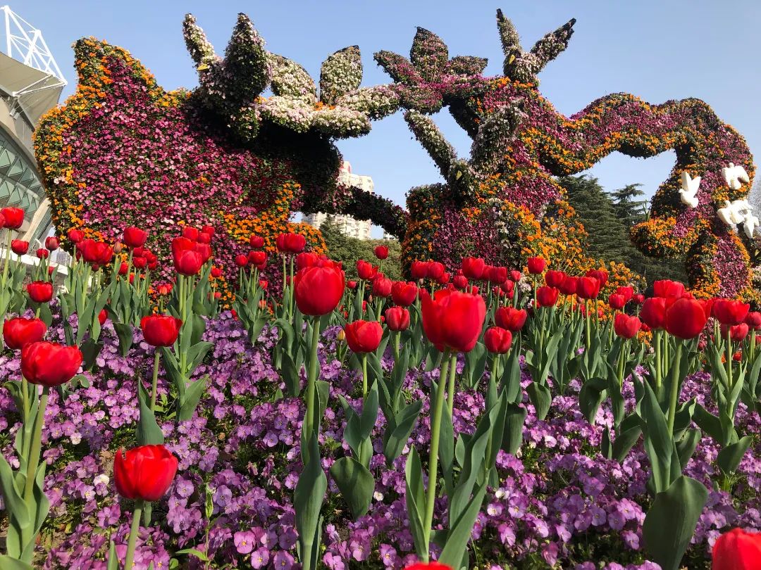 每年春季,上海植物园内新优品种球根花卉竞相争放,园方挑选种植了适应性好、花期相近、观赏价值高的郁金香、洋水仙等花卉,眼下郁金香正值最佳观赏期,朵朵花卉在园中盛放。