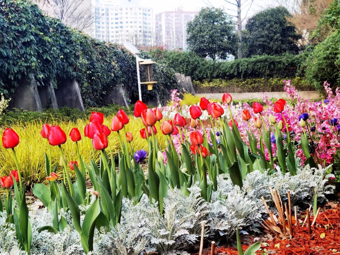 三月天,大家喜爱的郁金香已经在街头公园内绽放了,簇簇花卉迎风摇曳,郁金香迎来了最佳观赏期,快来云赏一波!