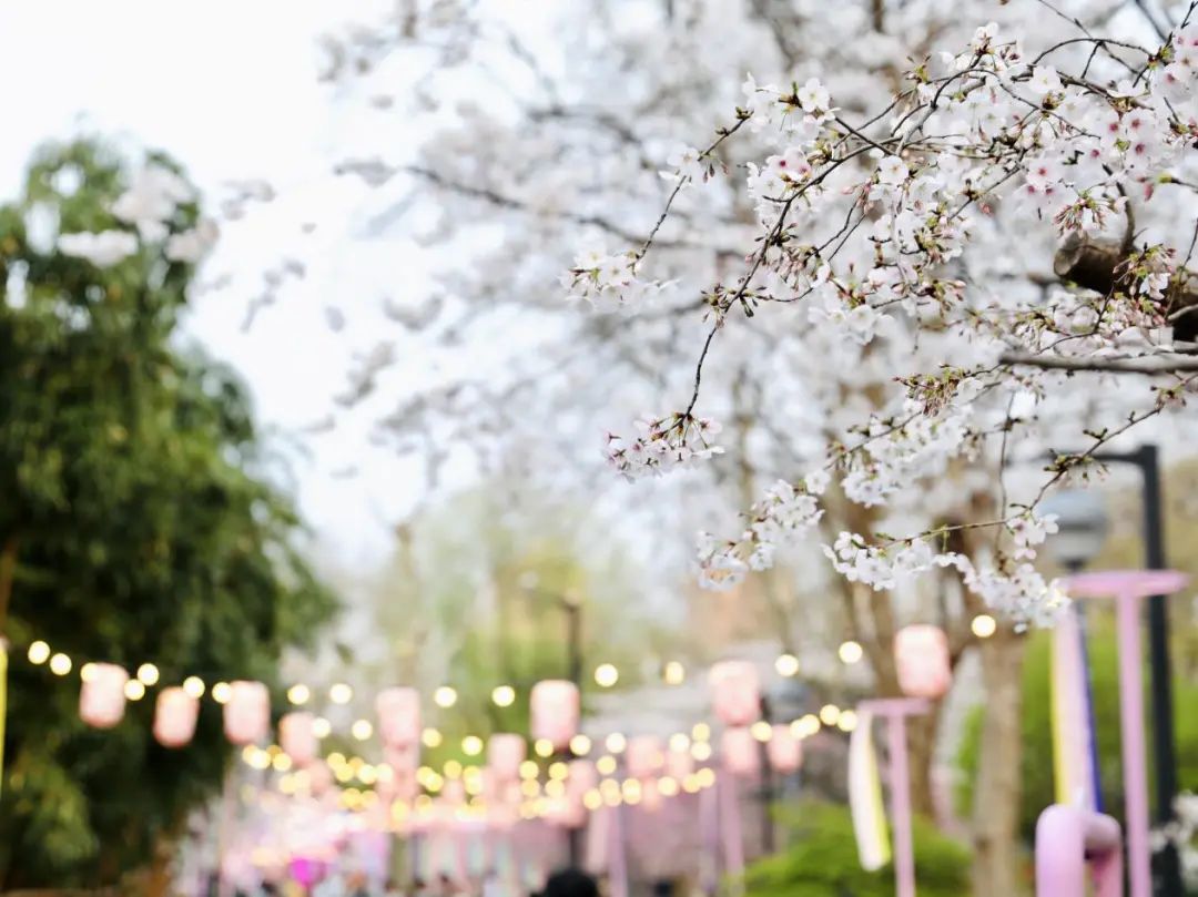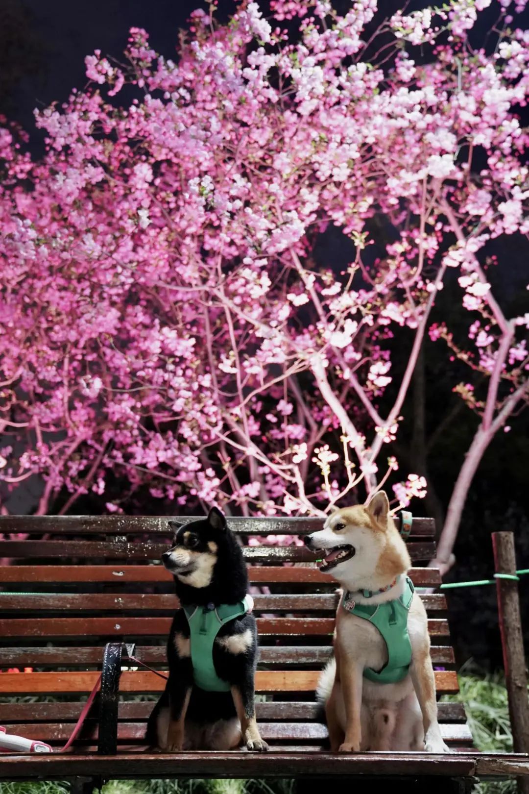 作为虹口的网红花卉,虹口足球场的樱花一直都超热门,夜樱也别有一番风味。