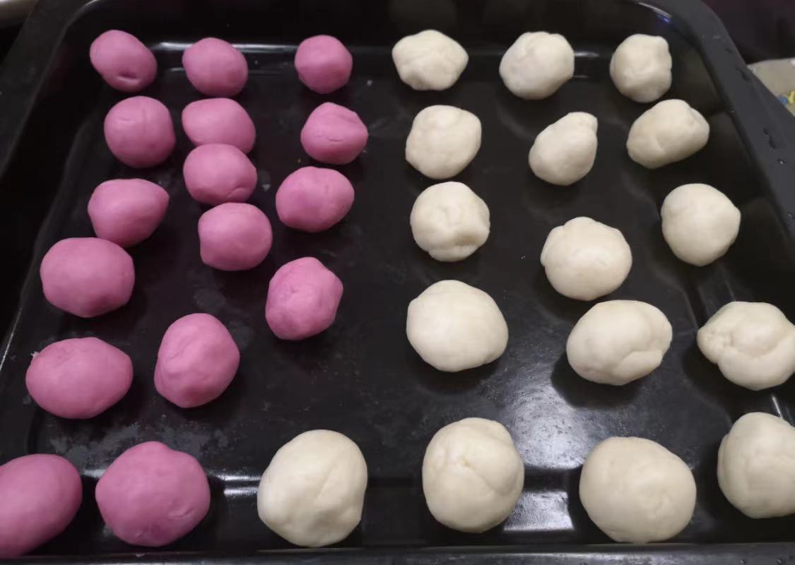 3. 将提前做好的红豆馅等份分好,揉圆备用。