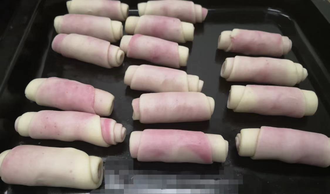 6. 将包好油酥的油皮压扁,擀开卷起,静置10分钟,重复2次。