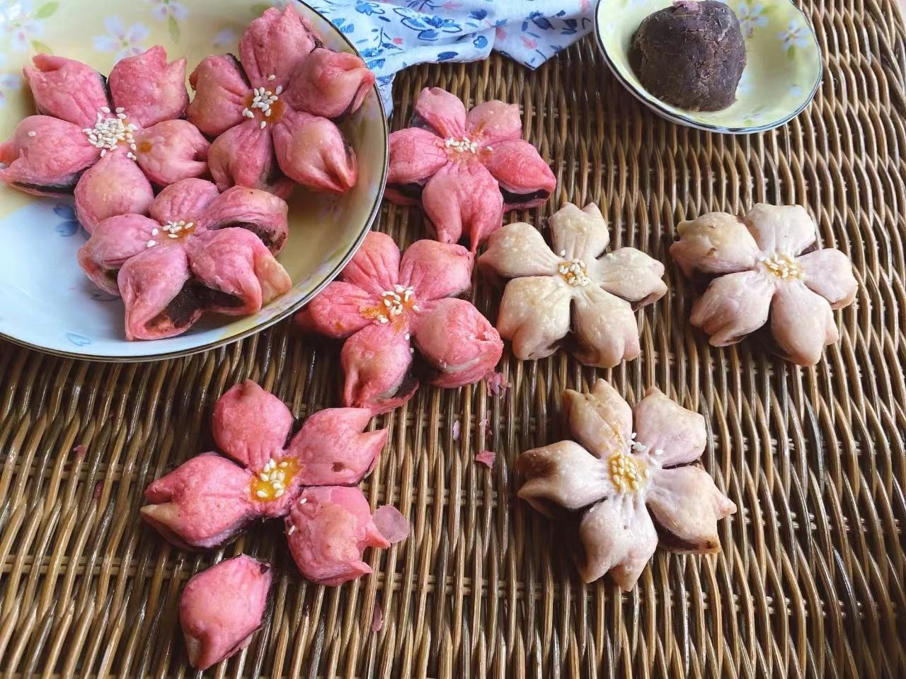 中国糕点向来与时节相呼应,也有拟作花态的传统,粉花黄蕊,清新淡雅,五瓣拼合,小巧轻盈。三月的樱花如此之美,何不制一款酥点将它留住,来换一场粉红色的梦吧!