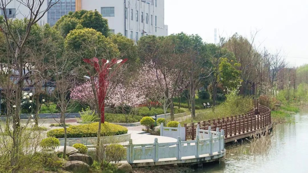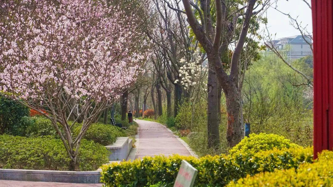 沿着公园步道缓缓向前,有湖、有亭、有树、有花,水与树相伴,好景与春意共生,锦怡园的春日氛围愈渐浓烈。