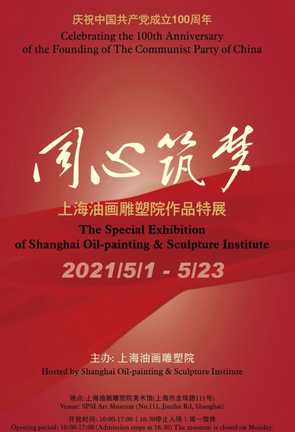 “同心筑梦——上海油画雕塑院作品特展”是上海油画雕塑院为庆祝中国共产党成立100周年特别策划的展览。展览分为“峥嵘岁月”“同心筑梦”“时代风华”三个部分,精心挑选近70件来自院艺术收藏和院艺术家及专业人士各个时期的油画和雕塑作品,展现和赞美了中国共产党英勇顽强,经历了风雨如磐艰难的革命斗争取得胜利,以及进行伟大的社会主义建设,引领国家和人民走向繁荣、富强、和平的非凡历程。