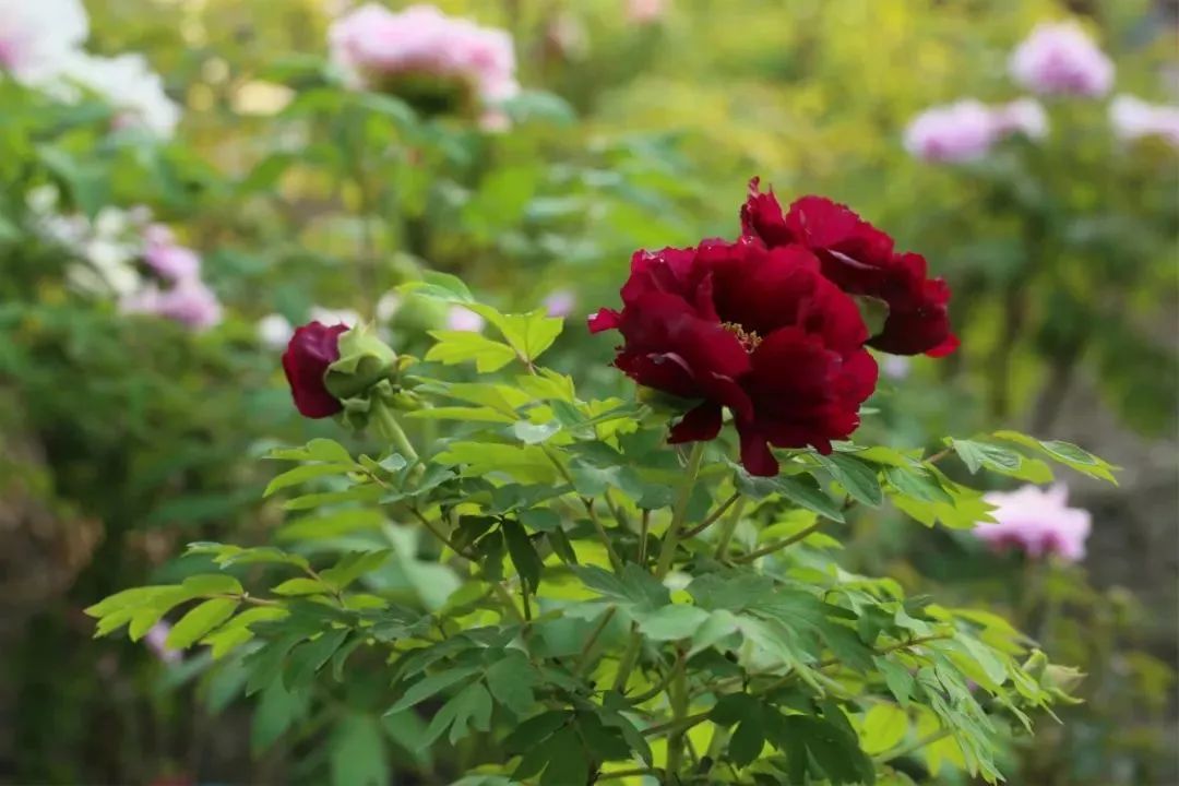 目前,园内有近20个品种,1000余株牡丹,近400平米的花坛面积。
