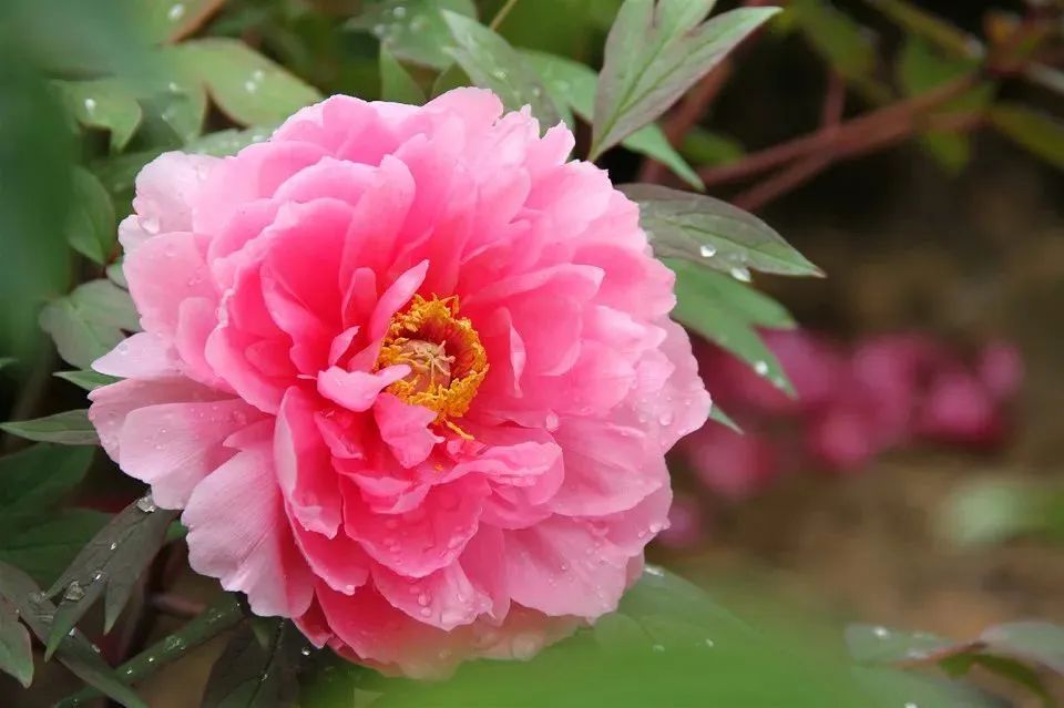 日暮牡丹是日本引进品种,花朵呈艳丽的粉色,植株生长势强,花量大,为多花品种,清香宜人。