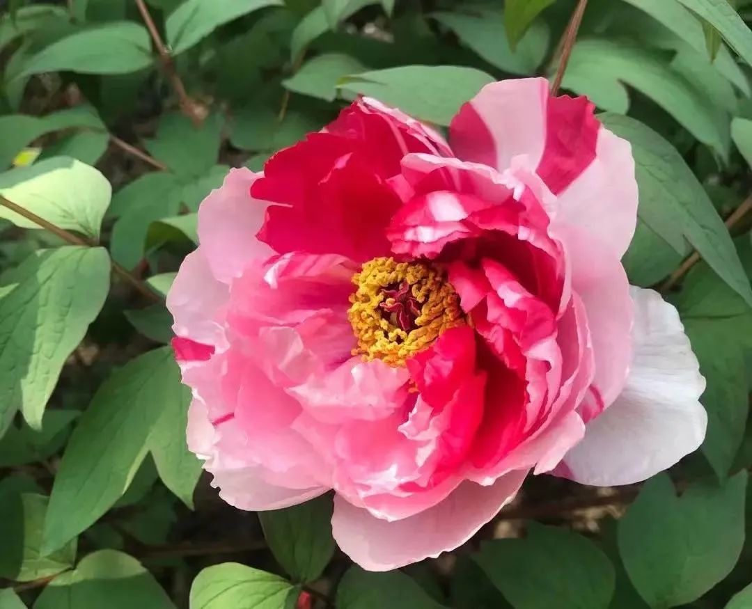 岛锦牡丹一般为复色花,花朵很大,一朵直径能达18公分,一花两色,一半红或者一半粉,或者粉白相间等,十分漂亮。