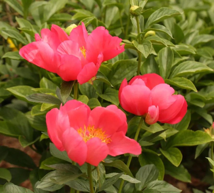 此外,若仔细观察它们的叶片,也有明显不同:牡丹最顶部叶片像个小鸭掌,大多三浅裂,叶色多为绿色;芍药顶端叶片往往深裂或者完全是细长的小叶片,叶色多为浓绿色。