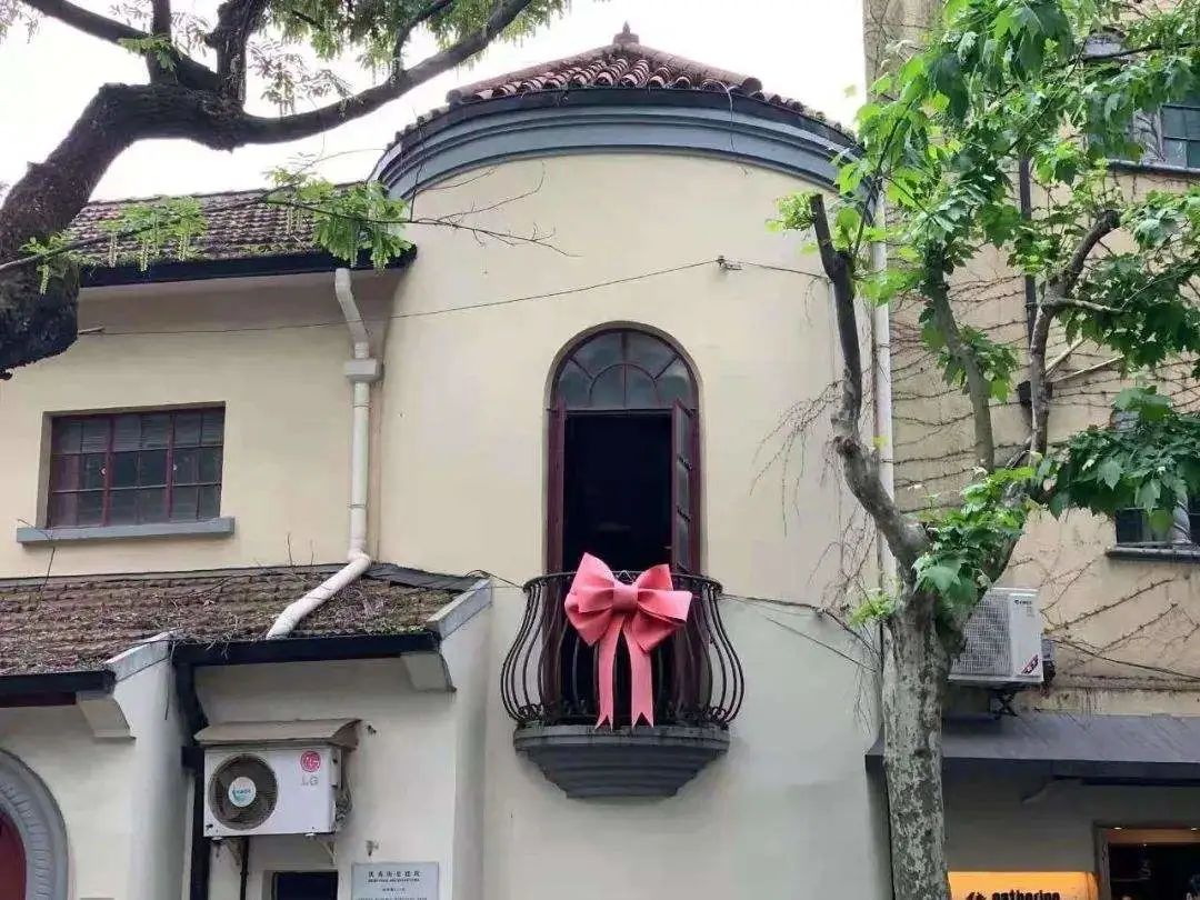 而在上海武康路上,也曾有一处网红阳台,老建筑的铁阳台上绑了个硕大的玫红蝴蝶结,虽然绑者无心,但因为在显眼的地标附近,也博得了游人的目光,成了大家的打卡景点之一,成了上海最浪漫的阳台。