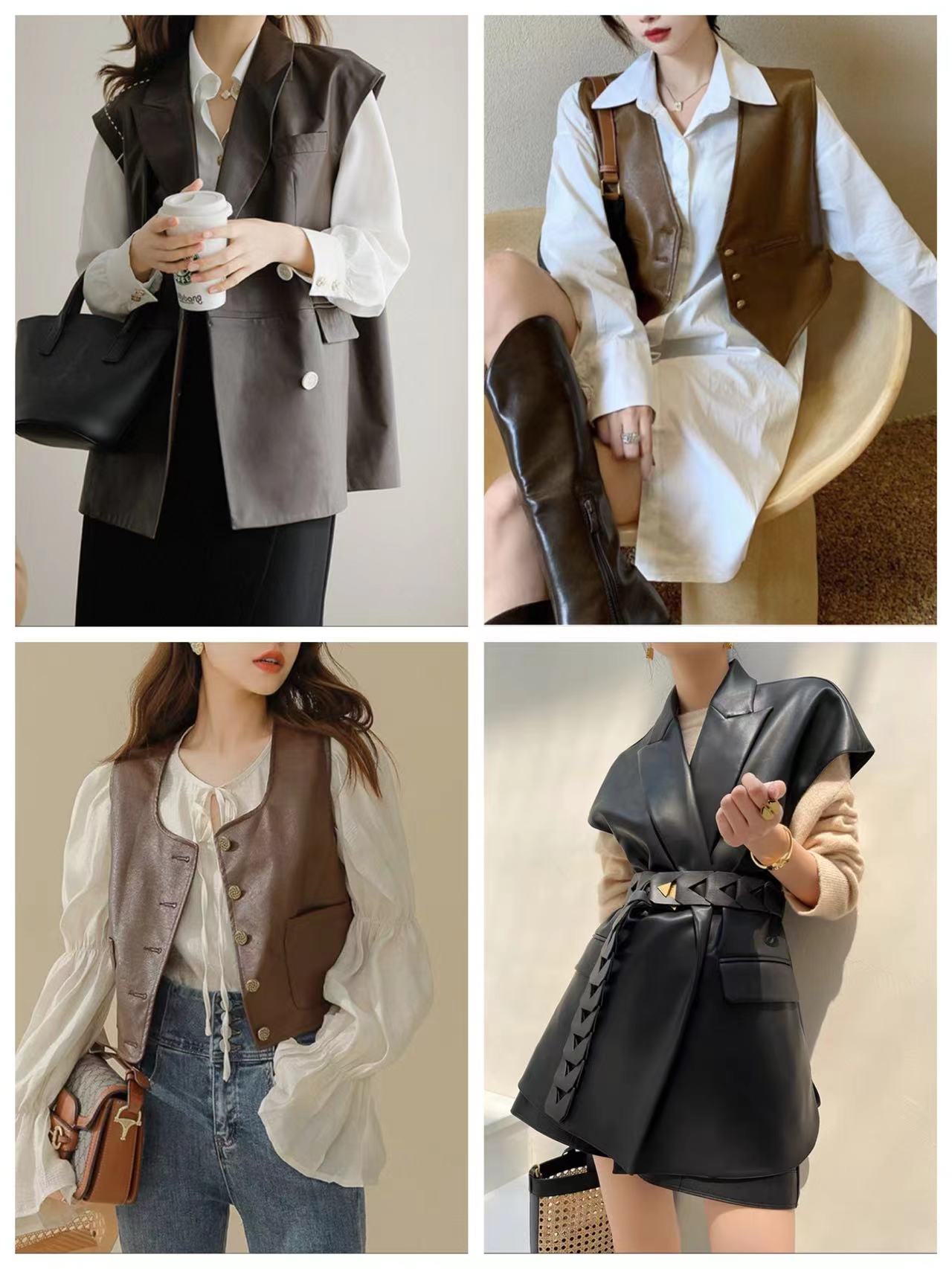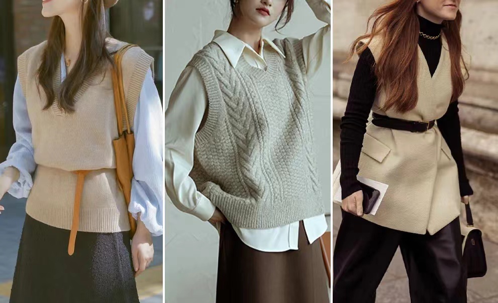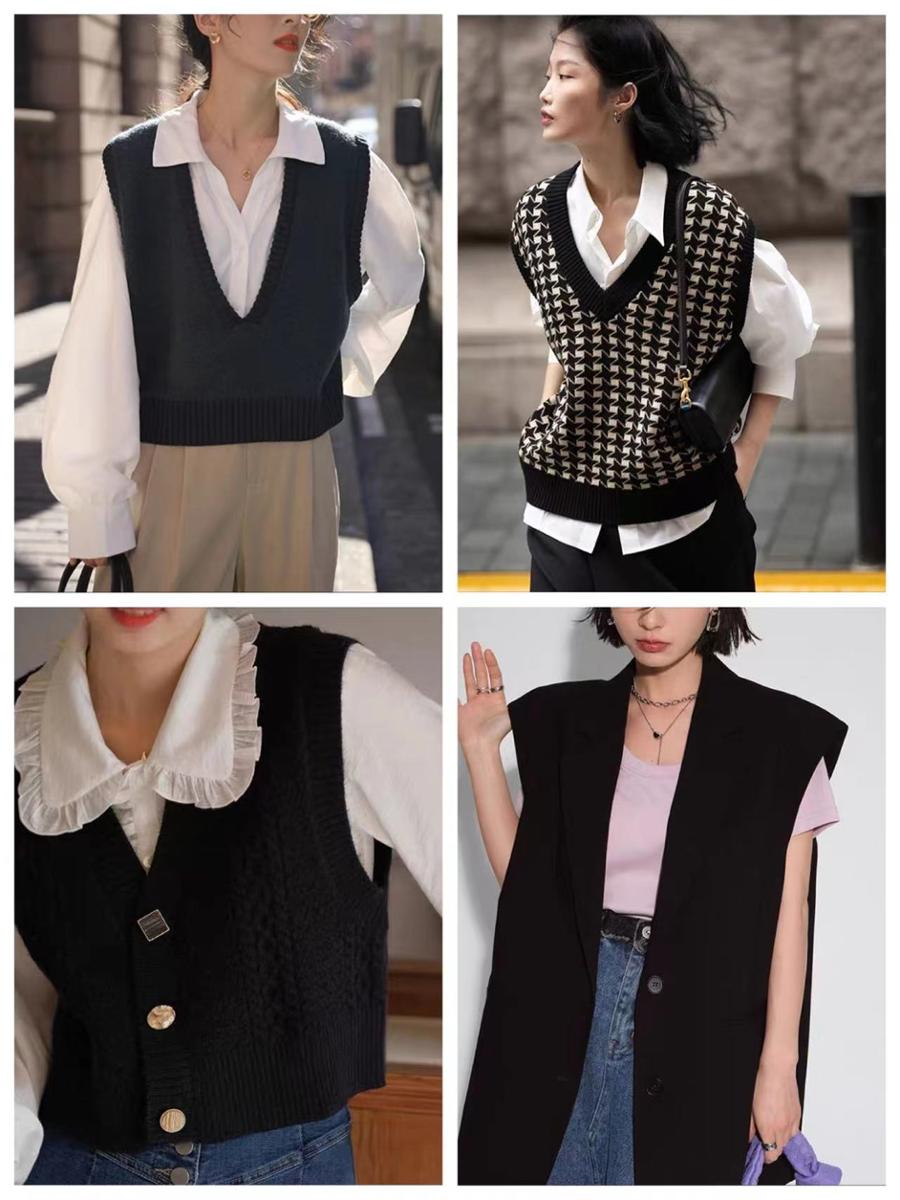马甲的材质一般以针织为主,其次是西装料、皮质等等。针织马甲较能凸显温柔感与亲和力,西装料、皮质马甲则更具线条感和立体感,适合走酷帅风的女生。