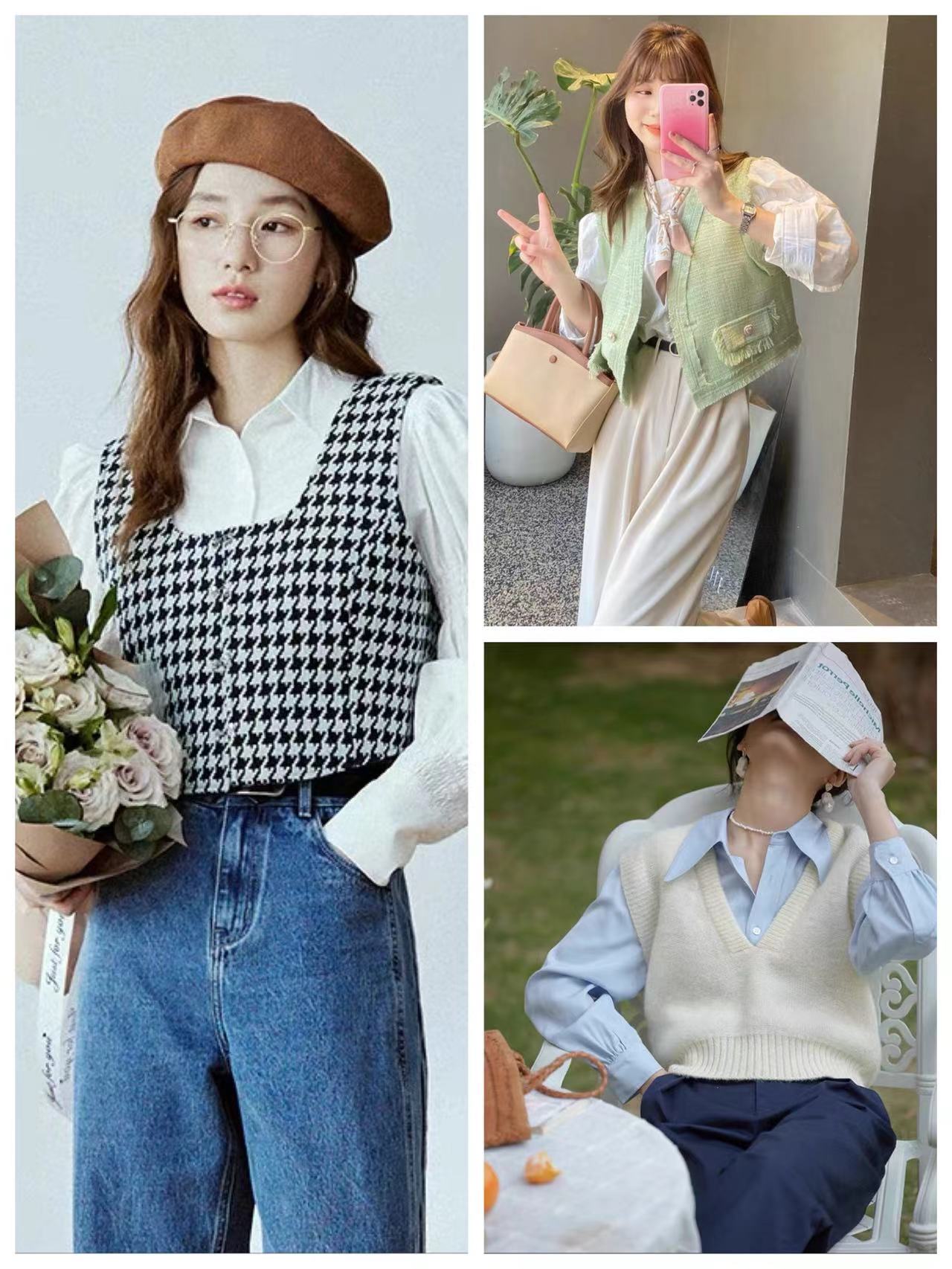 马甲受欢迎的原因,除了实穿还自带文艺气质,重点是很减龄,学院风也是很多女孩子们都喜爱的。格纹或刺绣图案,春日缤纷的色彩,搭配短裙或牛仔裤,穿着青春而又显得朝气感十足,森系校园感也是应运而生了起来。