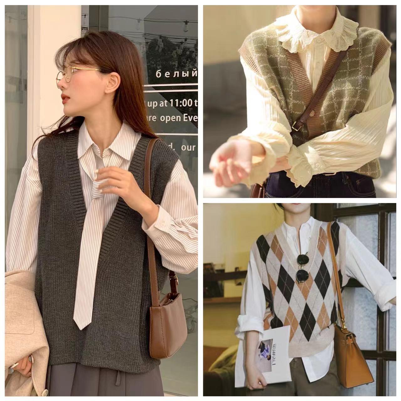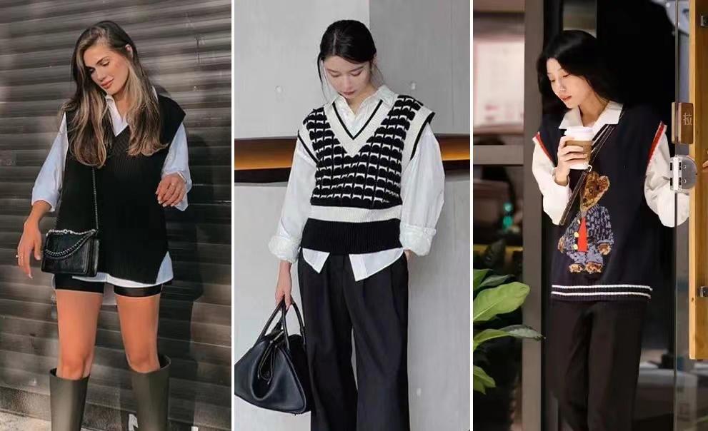 马甲+衬衫进行叠穿,在调节保暖度的同时,还能利用塑造出的层次感让造型看起来更加时髦,和其他单品混搭,复古、潮酷、知性都不在话下!