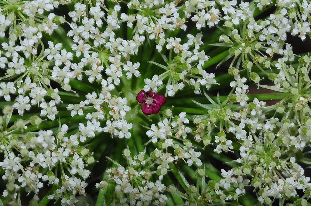 野胡萝卜的花序,正中心一朵花常为紫红色(寿海洋摄)
