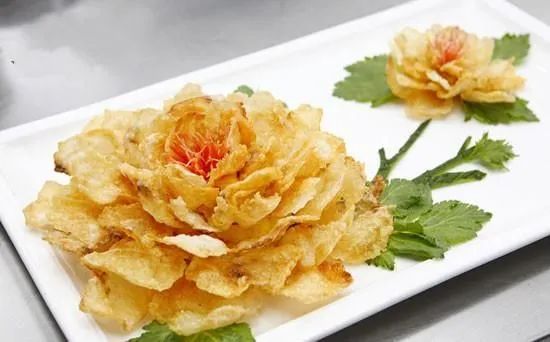 苏轼除了是著名文学家、书画家外,还是一个地地道道的美食家。他在《雨中明庆赏牡丹》中写道:“霏霏雨露作清妍,烁烁明灯照欲然。明日春阴花未老,故应未忍着酥煎。”而在《雨中看牡丹》也有异曲同工之处:“千花与百草,共尽无妍鄙。未忍污泥沙,牛酥煎落蕊”。他将牡丹花瓣轻轻摘下,入牛酥油炸,酥嫩可口,一道美食,“东坡炸牡丹”就此成名。