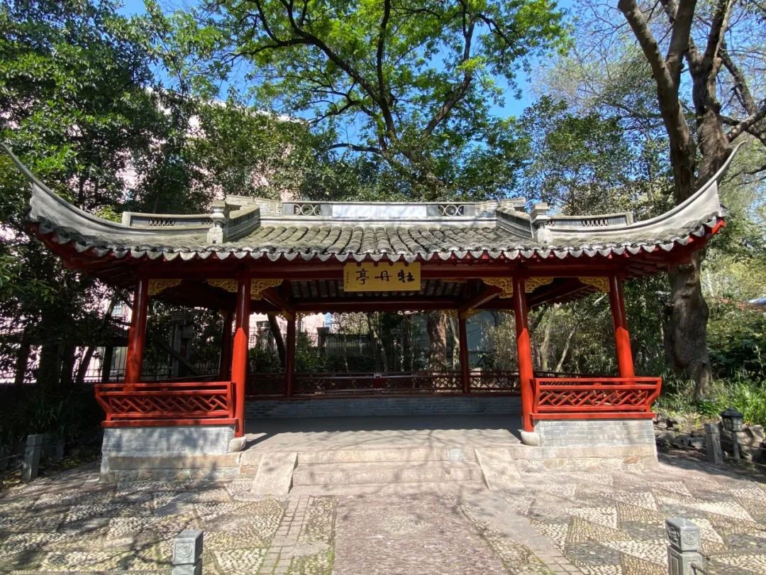 古朴雅致的牡丹亭位于牡丹园内,它始建于1916年,初名“中国式凉亭”,亭为简易茅草蓬顶。1922年11月,原上海救火会的一口大铜钟搬迁到亭前的草地上。1925年,将中国式凉亭改建为黑瓦覆顶的传统式长方形园亭。1934年,为兴建大理石亭而移置现址,并以此亭为主体,兴建“中国园”。1956年,亭前辟建牡丹园,该亭遂正式改名为“牡丹亭”。牡丹亭为传统歇山建筑造型,亭前有一对石狮,富有中国古典园林建筑特色。1996年扩建牡丹园时,由社会资助重修,使旧亭风貌焕然一新。