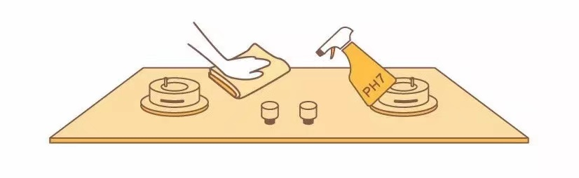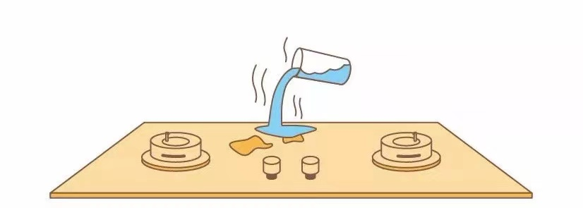 燃气灶面板上的污渍结块时可以先用热抹布热敷几分钟,接着在污渍处倒适量温水和中性清洁剂来清洗。