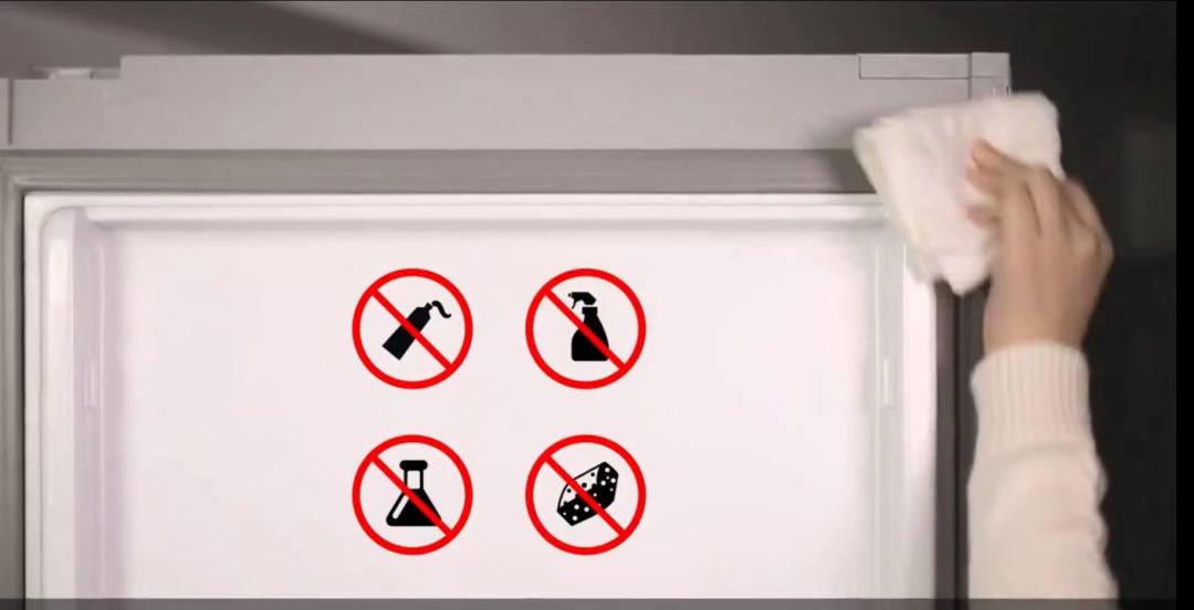 冰箱内部沾上油脂时,请及时擦掉,油脂可能会导致塑料部件开裂。