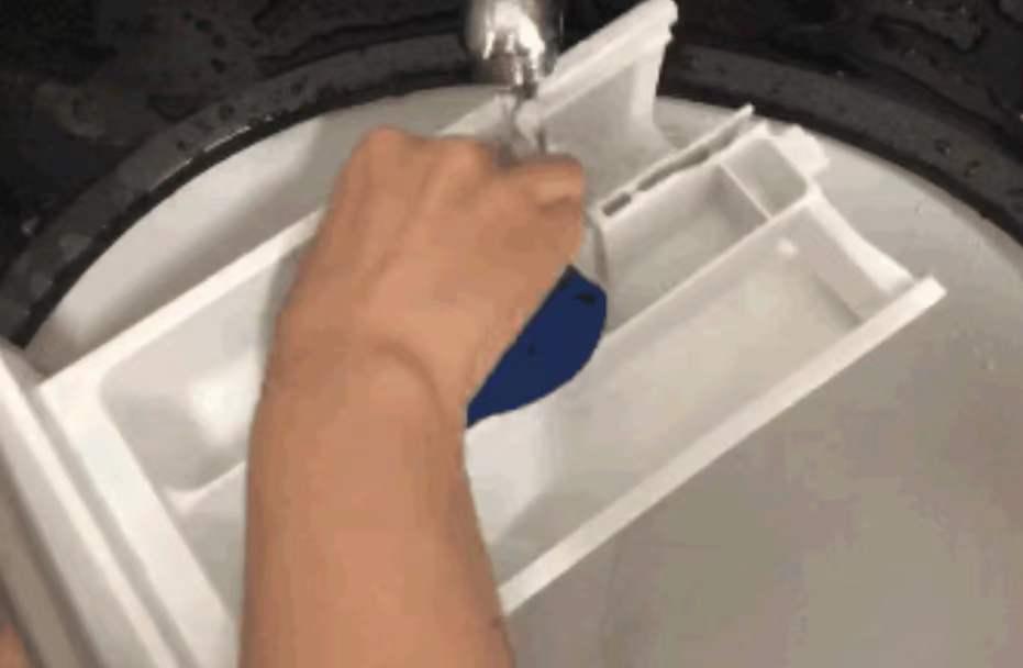 物料盒常用来放洗衣液、柔顺剂等,易有残留,时间久了容易结块滋生细菌,应定期按照使用说明书正确拆下并清洗。
