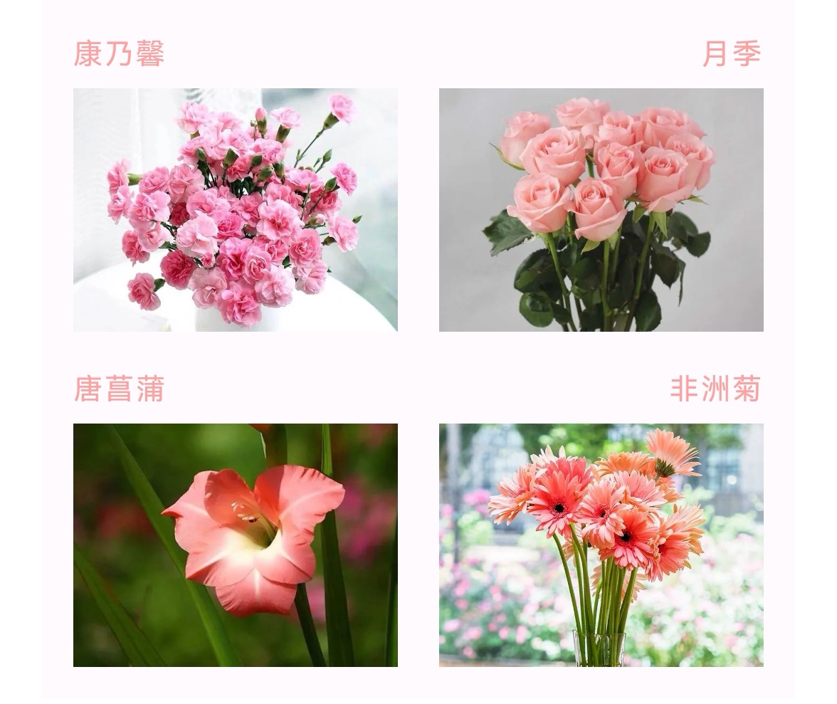 需要说明的是,不同花色的康乃馨有着不尽相同的花语,并非所有的康乃馨都是“母爱之花”。所以,母亲节送花时,还需要仔细挑选哦~