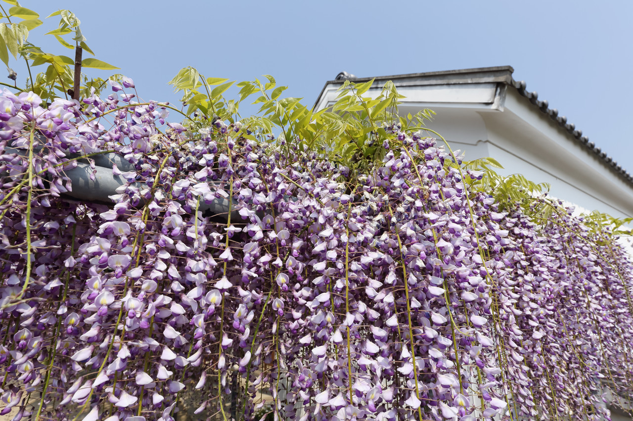 黄浦区安仁路218号豫园鱼乐榭南侧有一株老紫藤,树高4.2米,有300余年树龄,是申城唯一一株开白色花朵的古紫藤。微风裹挟着春意,卷地而来错杂的藤蔓交织在紫藤架上,枝条上绽满白色的小花,散发出醉人的花香。