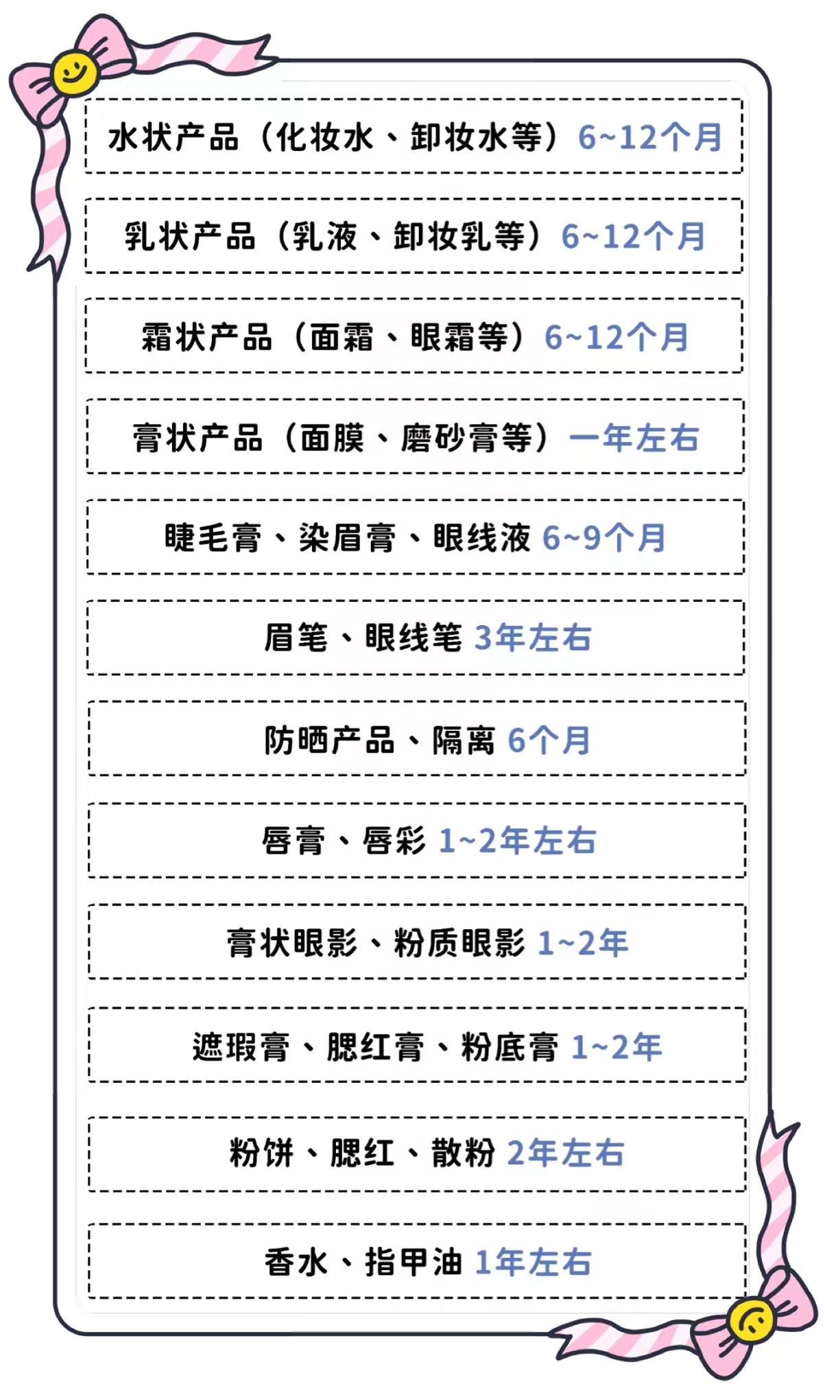 可能有姐妹要抢答了:这道题我会,护肤品3年,彩妆5年。