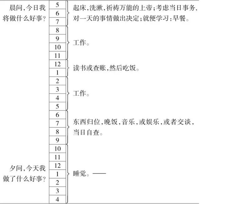 富兰克林是作家、发明家和科学家,也是美国开国元勋之一。他曾在自传中这样记录自己的一天: