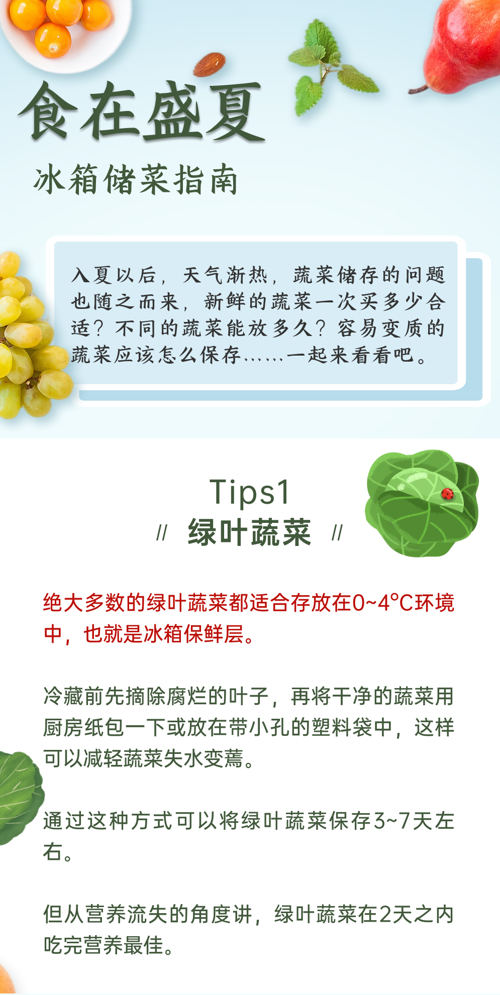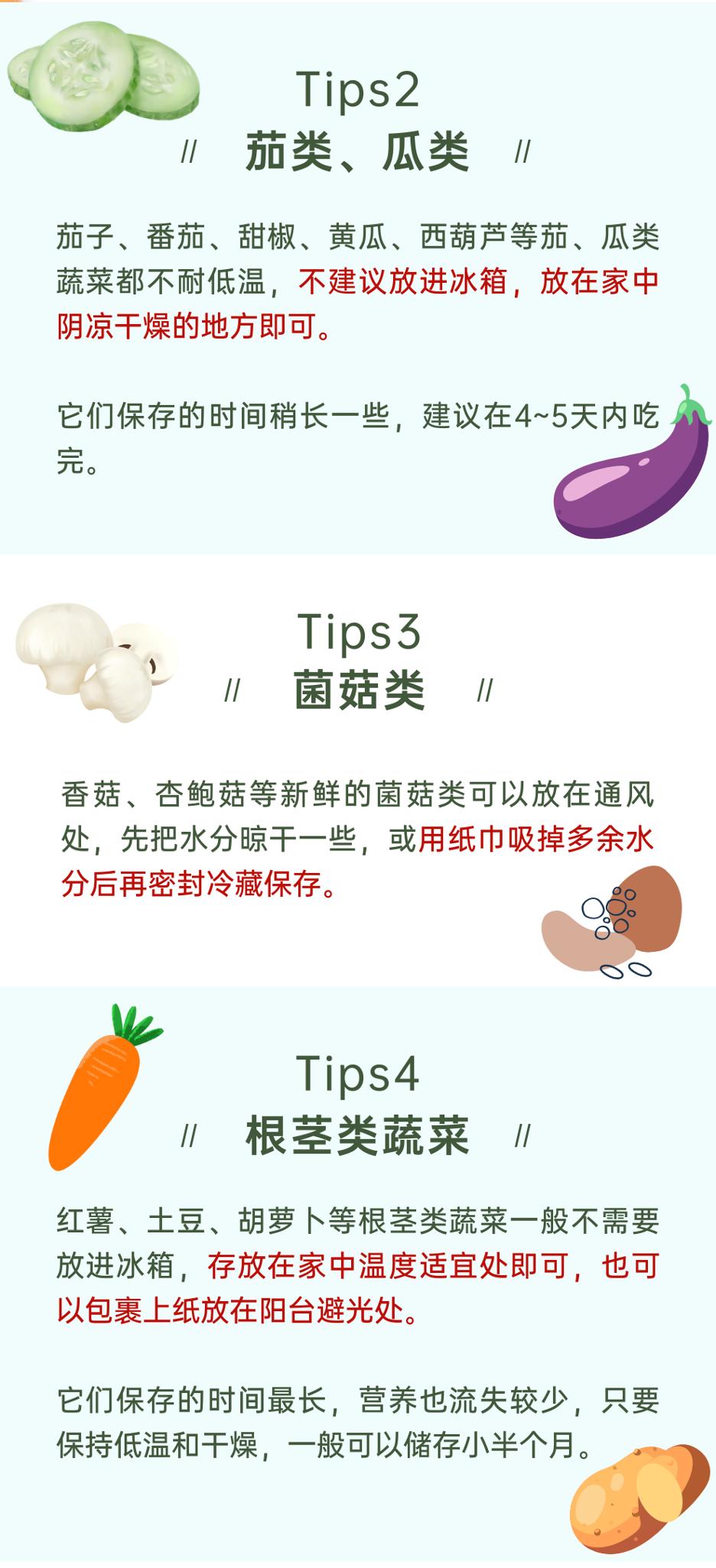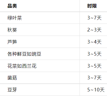 上述时限仅供参考,冷藏的蔬菜如当天吃不完,第2~3天要及时观察一下,有些发黄、发蔫就说明不太新鲜了。