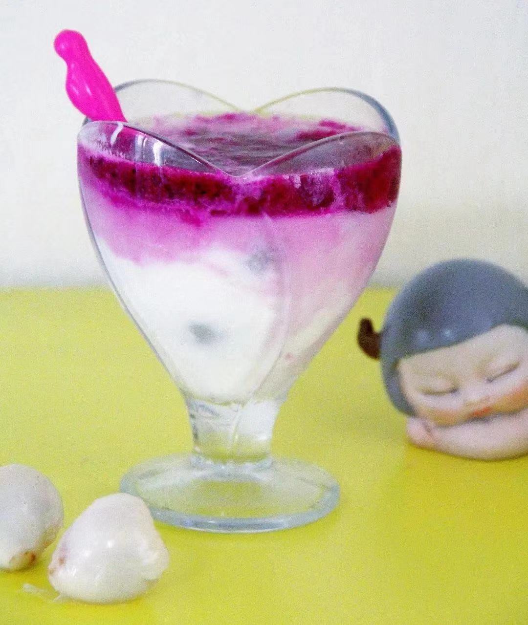 如需装饰,可将一整颗荔枝挂在杯口即可。