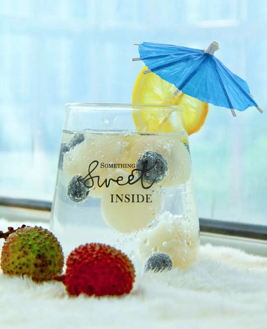 新鲜荔枝6颗、蓝莓6颗、气泡水300毫升