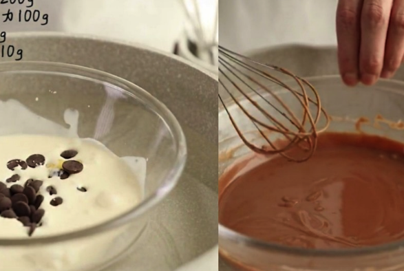 鸡蛋3个、细砂糖40克、牛奶100克、淡奶油200克、黑巧克力100克、黄油15克、麦芽糖10克。