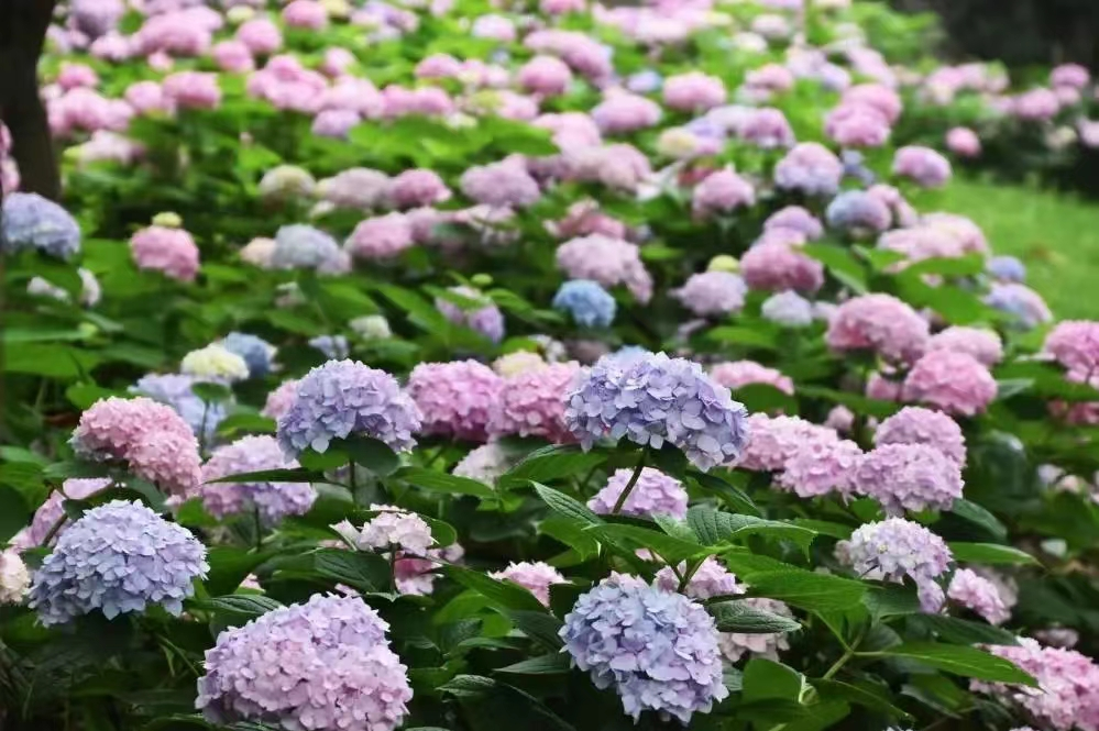 不知不觉,已是初夏,上海共青森林公园内2万余株八仙花竞相绽放,花团锦簇,梦幻缤纷,尽显夏日的浪漫风情,带来一种满心欢喜的希望。