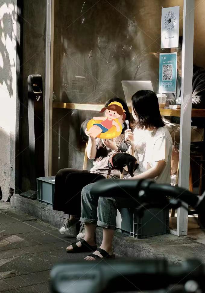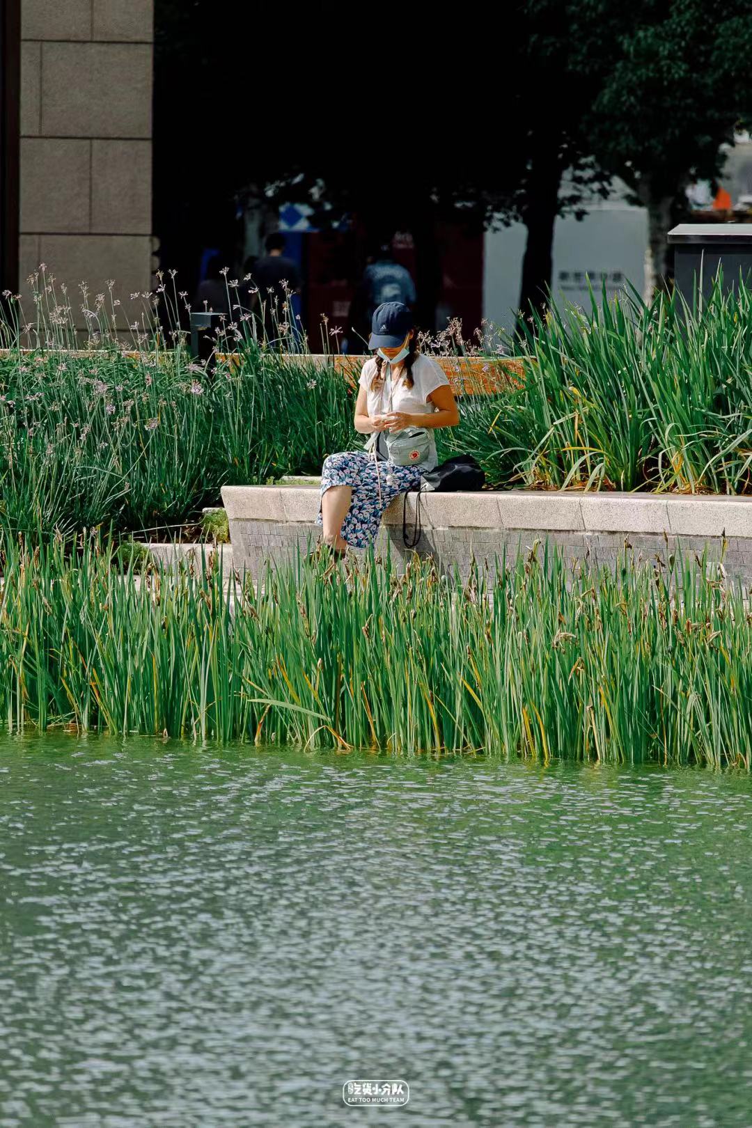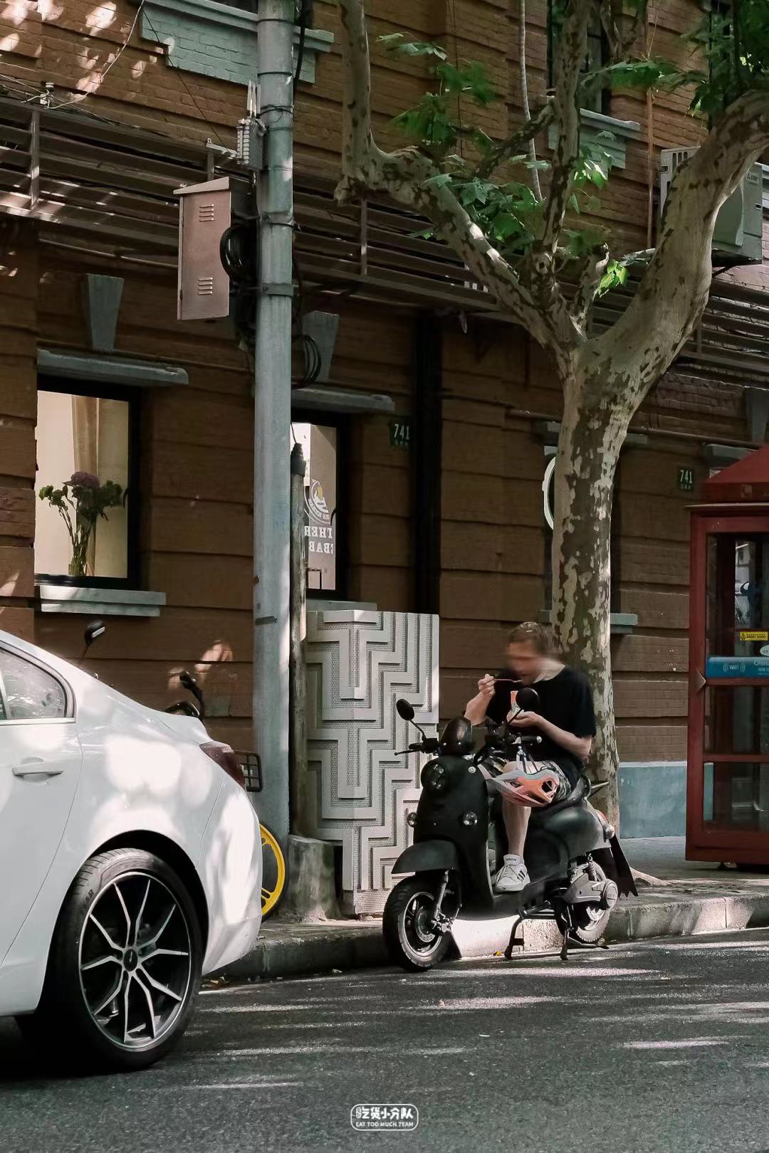 此外也有不少上海人,选择将美食打包后,坐在户外台阶上安静享受。